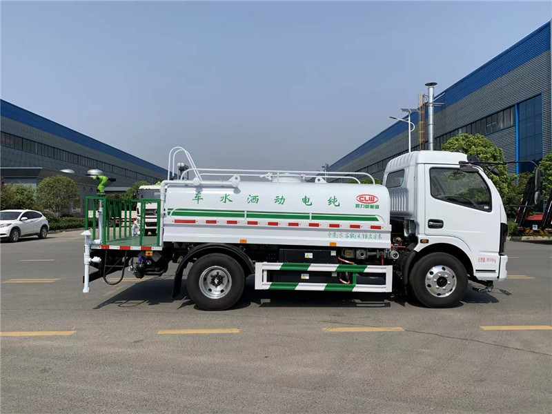 標準配置:灑水車為前沖、后灑、側(cè)噴、工作平臺、綠化炮、罐體尾部自流閥1個、消防接口、水位計各1個,輸水管3米2根,,億豐水泵,控制方式為手動。普通油漆。三彎對沖(或鴨嘴前沖),高強度護欄。鋼制水管炮筒。所有配件防銹噴漆后工裝。封口全自動焊.整車標配大通徑球閥。