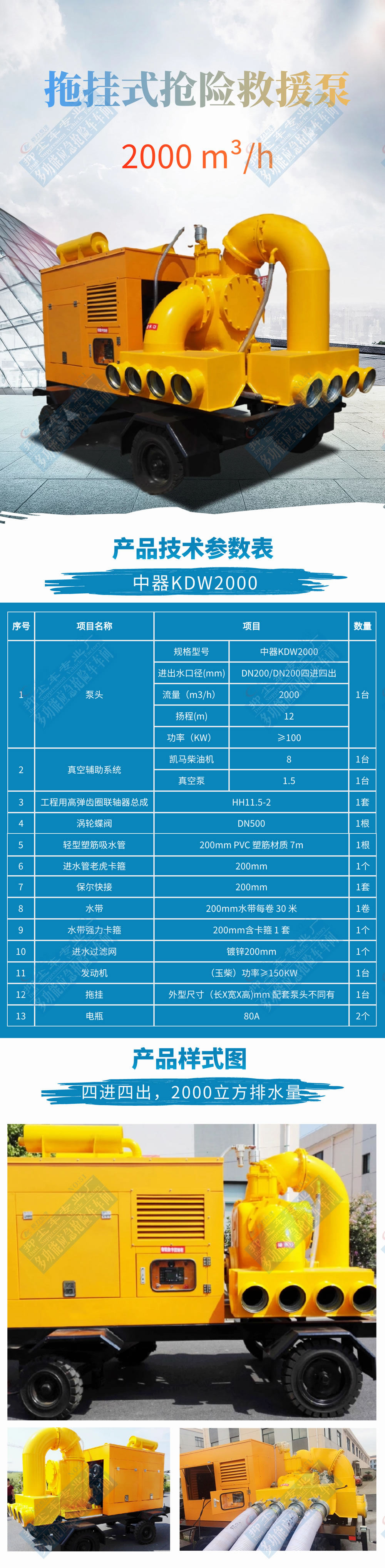 防汛泵車-城市防汛移動搶險專用排水泵站,又稱柴油機驅動無堵塞泵,主要用于市政排污及防澇工程、農業灌溉,工業排水、排污等廣泛領域,根據類型又可分為固定式、二輪移動式、四輪移動式、防雨拖車式、帶防風雨罩戶外型。